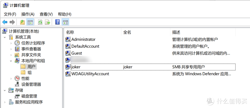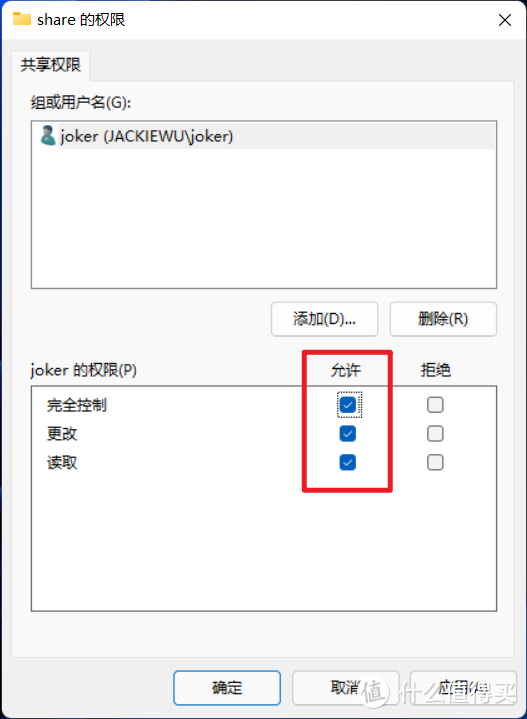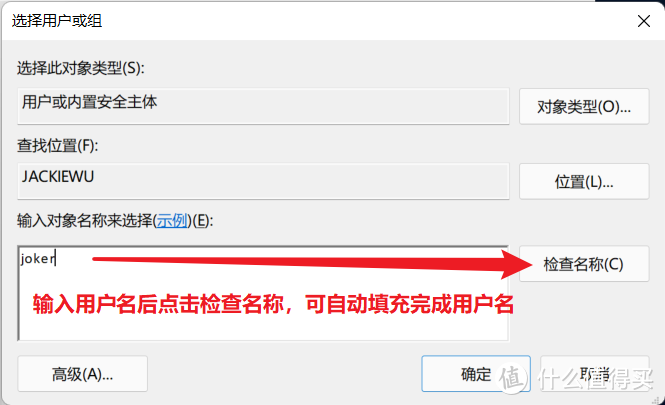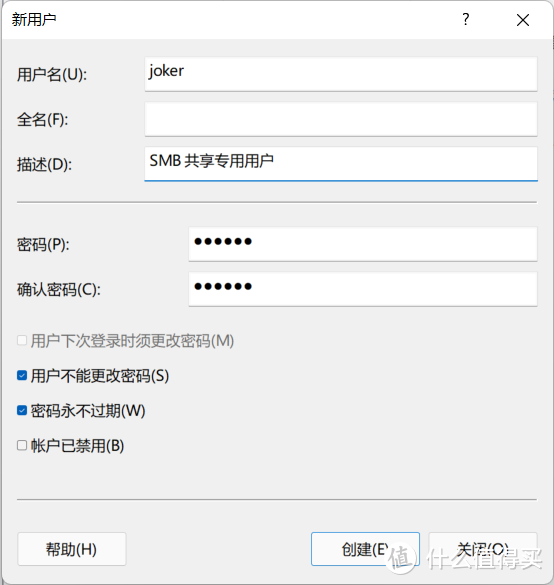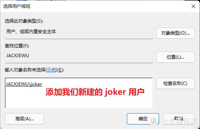 新建账号为 "joker" 的用户为例,相关设置如下: