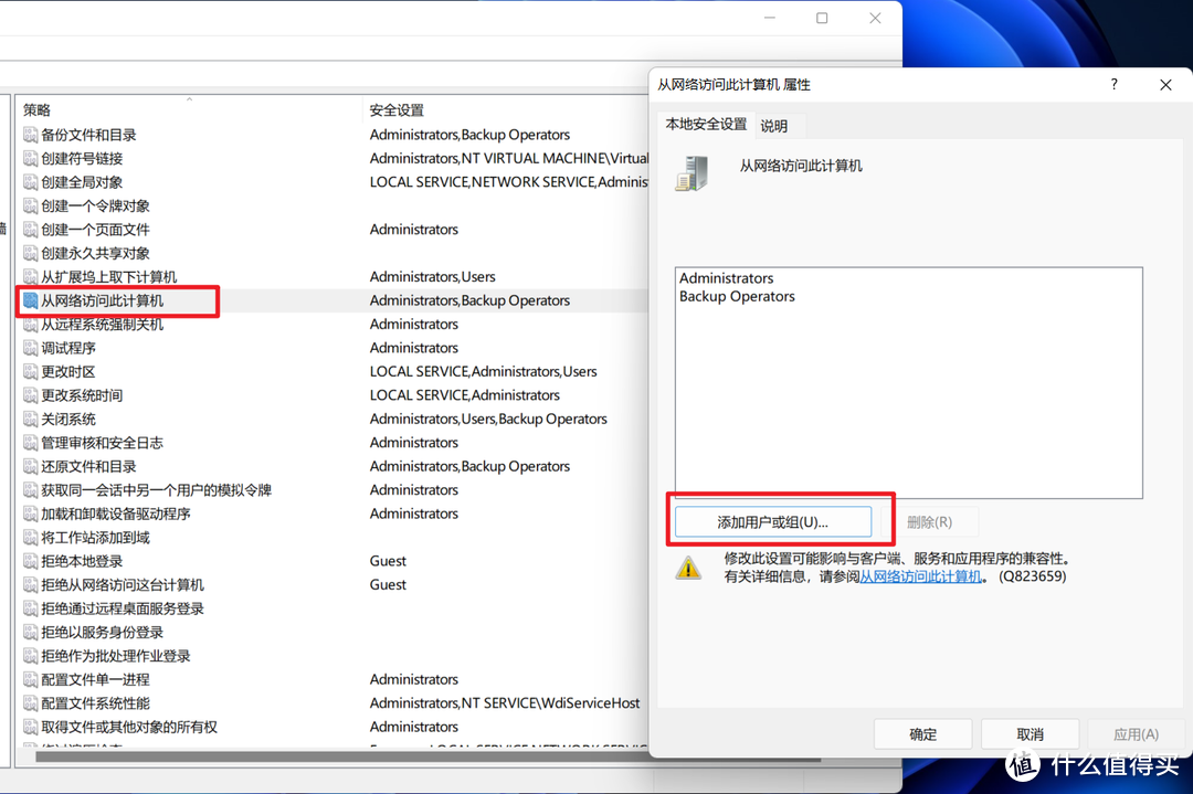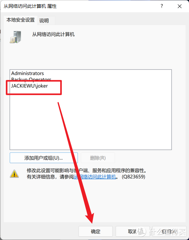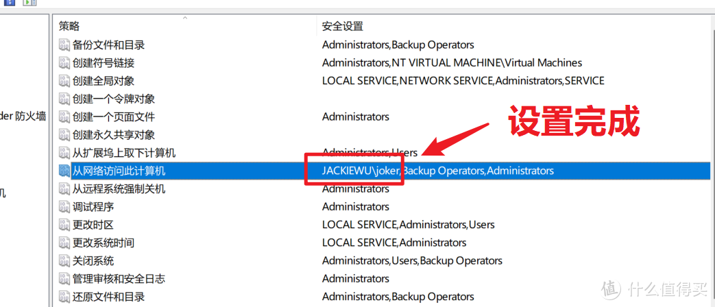 - 从网络访问此计算机:只有授权的用户能够通过网络来访问到本机上的共享文件资源(包括共享的打印机)