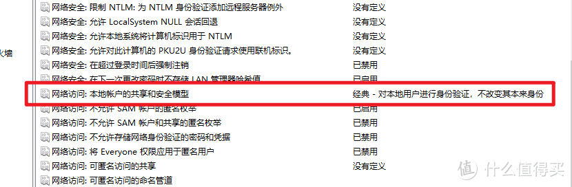“网络访问:本地账户的共享和安全模型” 设置为 “经典-对本地用户进行身份验证,不改变其本来身份”