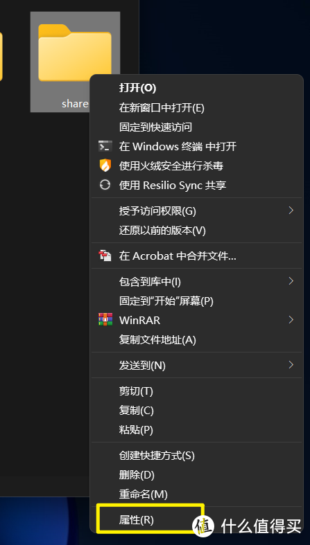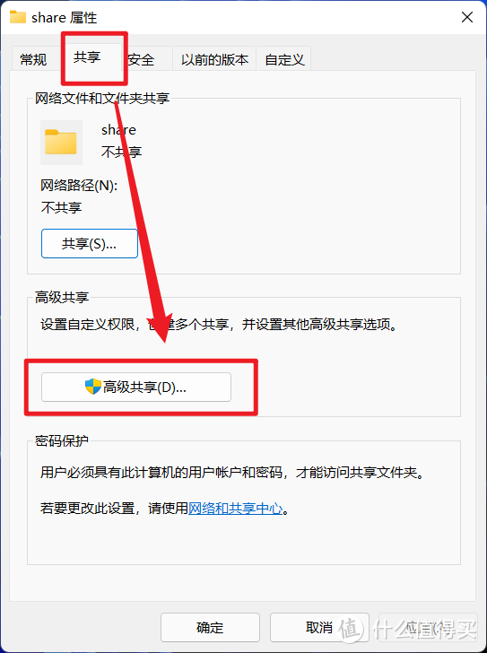 右键文件夹,点击“属性”右键文件夹,点击“属性”,点击“高级共享”