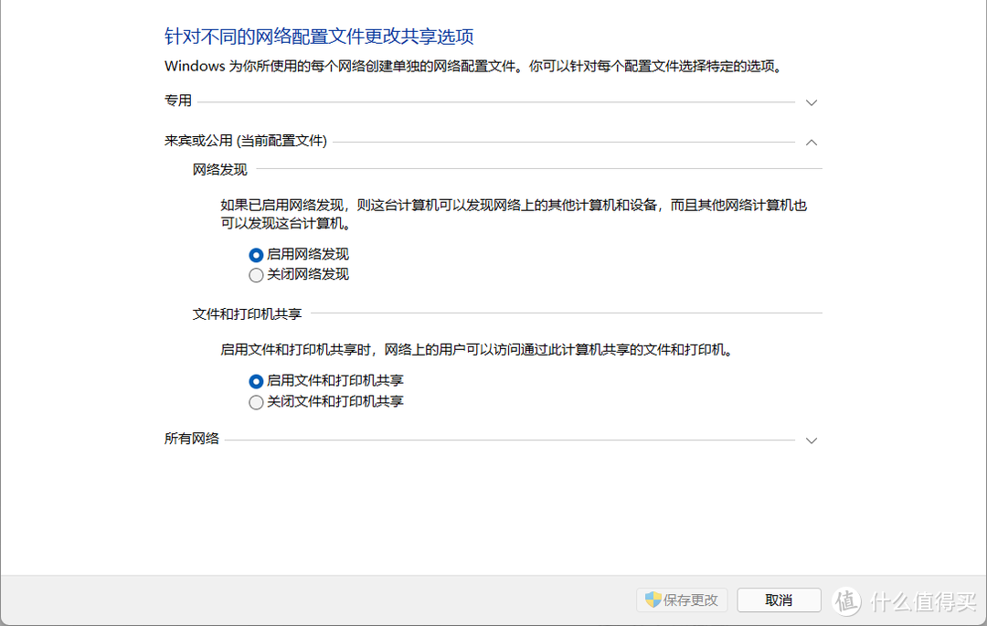 其实这一项设置不开启也是没问题的,不影响我们去做 SMB 共享,而且关闭此项设置能将我们从其他 Windows 主机的网络面板中隐藏起来,提高安全性。
