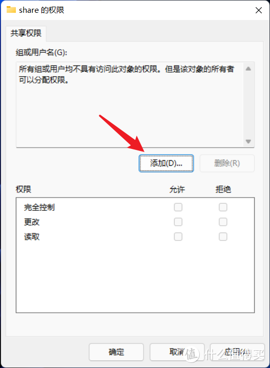 - 新建一个用户专门用于共享文件的授权,并设置此用户的权限